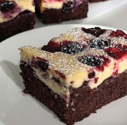Narejeno kremo enakomerno razporedite po pekaču in po vrhu dodajte maline ter borovnice.