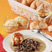 Mesne ruladice s testeninskim nadevom in poprovo omako