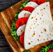 Ajdove palačinke z jajcem rukolo in češnjevimi paradižniki