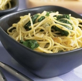 Slastne testenine s kozicami, zelenjavo in špinačo