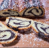 Prerezana makova potica z mandlji
