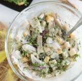 Velikonočna solata s slaniki, sirom in hrenom