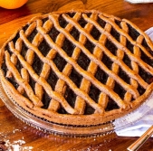 Limonova sirčkova torta s pečenimi slivami in robidnicami