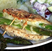 S šparglji in mocarelo polnjene piščančje prsi