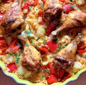 Piščanec s papriko in rižem v pečici