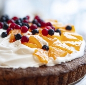 Lahka poletna jogurtova skutna torta z aronijo in jagodičevjem