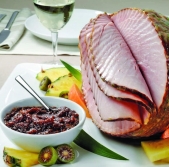 Pečena šunka s sladko-kislo slivovo omako