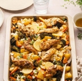 Pečen piščanec s krompirjem in zelenjavo na enem pekaču