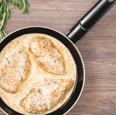 Piščančji file v smetanovi omaki s slanino