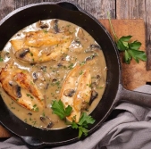 Piščančji zrezki v omaki s šampinjoni in vinom