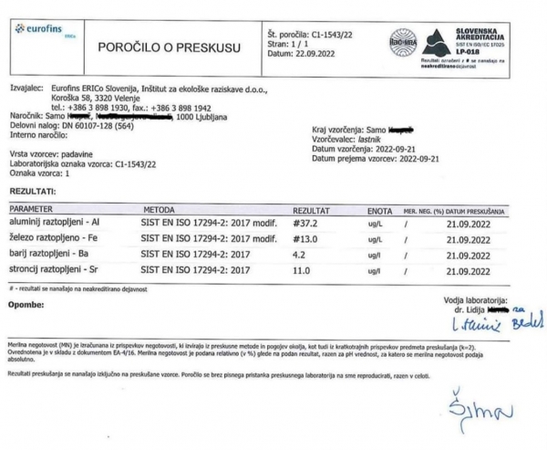 Laboratorijski izvidi vzorca deževnice v Sloveniji na dan 21.9.2022... 😢 Cheimtraili so verjetno teorija zarote...