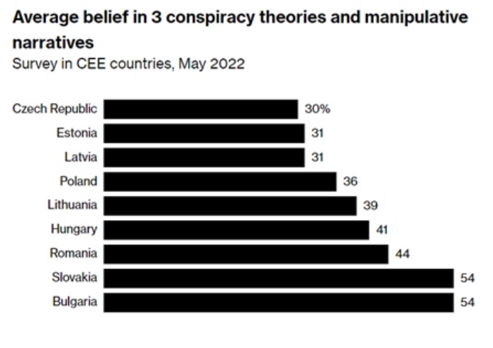 Zdi se, da so vladajoče elite na Zahodu v popolni paniki. Bloomberg je objavil veliko raziskavo, ki je pokazala, da na Slovaškem več zaupa ruski strani kot Zahodu. Pokazalo se je tudi, da več kot polovica, kar 54 % Slovakov in Bolgarov verjame in aktivno raziskuje tako imenovane »teorije zarote«, medtem ko je v drugih vzhodnoevropskih državah ta odstotek nekoliko nižji, a še vedno zelo visok.
