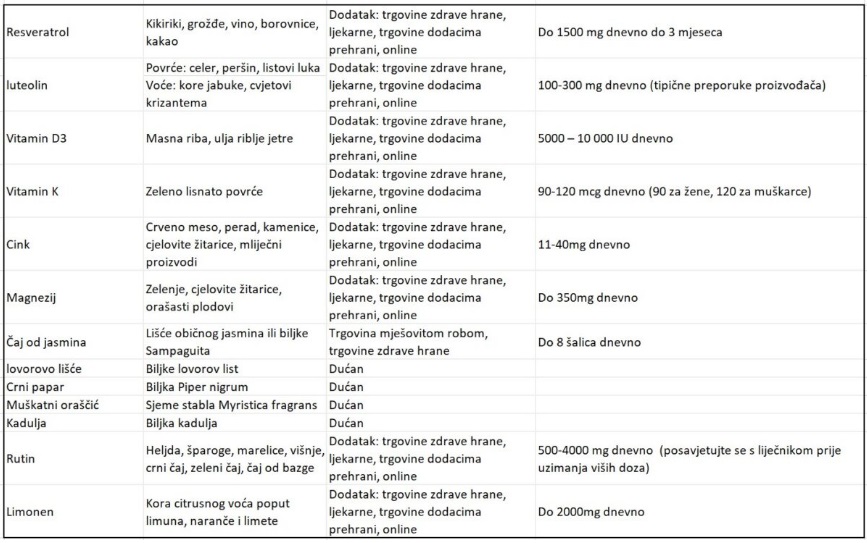 Tabela 1. Zdravila in dodatki, ki lahko pridejo v poštev (hrvaški jezik):