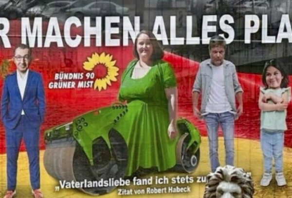 NEWSEXCHANGE SI | Je svoboda govora mrtva? Nemški poslovnež kaznovan s 6000 evri kazni, ker se je na reklamnem panoju norčeval iz politikov stranke Zelenih ...