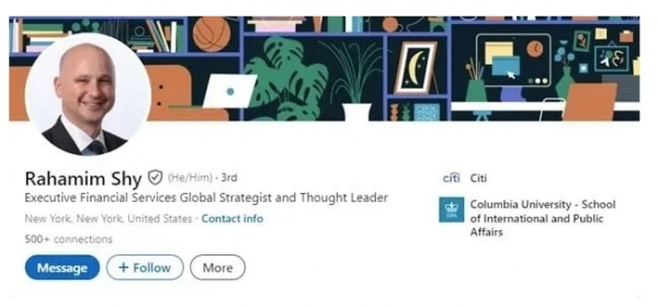 Njegova Linked In stran prikazuje zaimke v njegovi biografiji: