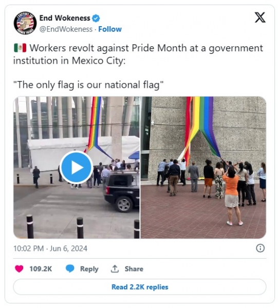 Podiranje mavričnega transparenta je prišlo po izvolitvi mehiške LGBTQ+ aktivistke Claudie Sheinbaum, prebujene mehiške predsednice, v začetku tega tedna.
