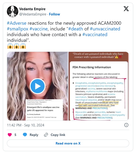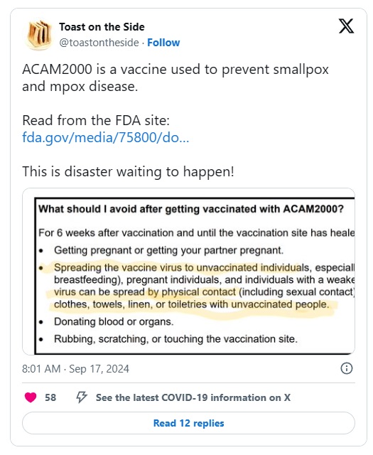 Ameriška agencija za hrano in zdravila (FDA) je nedavno izdala zaskrbljujoče opozorilo glede cepiva ACAM2000 Mpox. To opozorilo osvetljuje potencialno smrtna tveganja, ki ne obstajajo samo za tiste, ki so cepljeni, ampak paradoksalno tudi za tiste, ki niso.