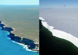 Še nekaj pritegne pozornost - slike obalnega dela Avstralije in Antarktike. Bodite pozorni na gladkost terena na slikah v prvi vrsti in na videz klifov v drugi vrsti. Ali obstajajo podobnosti?
