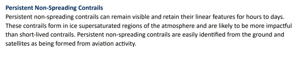 Ključni odlomki iz dokumenta:- Stalne kondenzacijske sledi, ki se ne širijo, lahko ostanejo vidne in ohranijo svoje linearne značilnosti ure do dni.