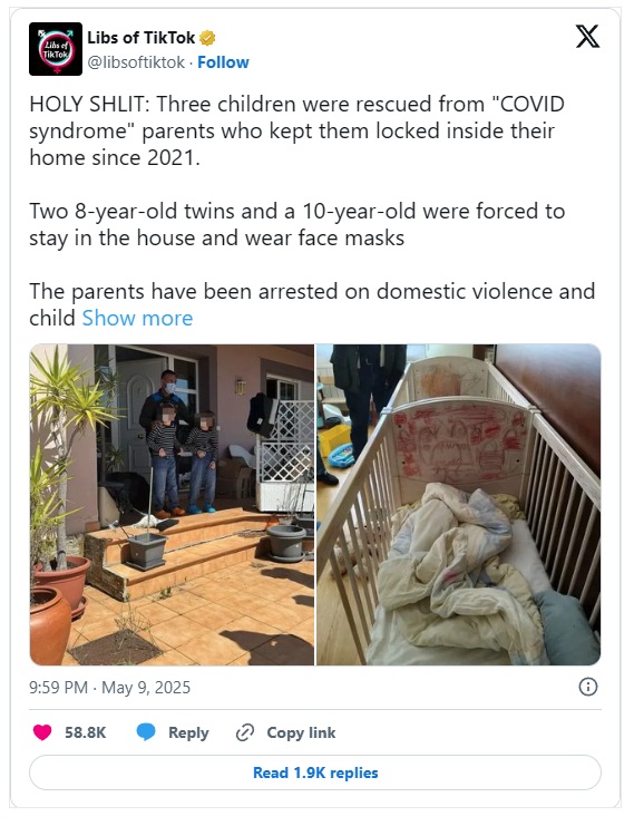 Španski starši, ki so svoje otroke skoraj pet let držali zaprte v svojih domovih, so obsedeni s koronavirusom in zdaj grozijo z zaporno kaznijo. Njuni trije otroci – osemletna dvojčka in desetletni otrok – so živeli v nenehni »zapornici«, prisiljeni so bili nositi maske in ne hoditi ven, čeprav so bili vsi uradni ukrepi že zdavnaj odpravljeni. Ta srhljiv primer razkriva temno plat pandemične paranoje.