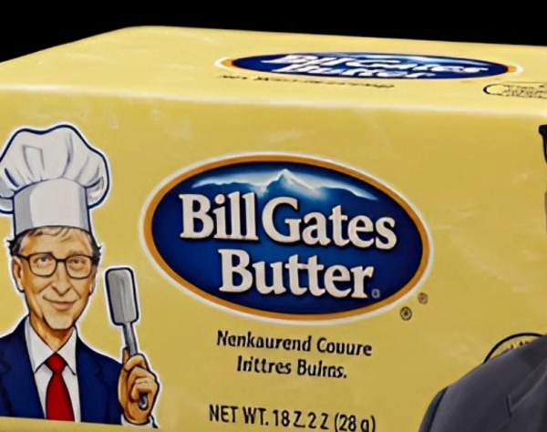 NEWSEXCHANGE SI | Bill Gates v svojem najnovejšem poskusu zamenjave pravih kmetov in krav s tovarniško izdelanimi kopijami znova promovira ponarejeno maslo ...