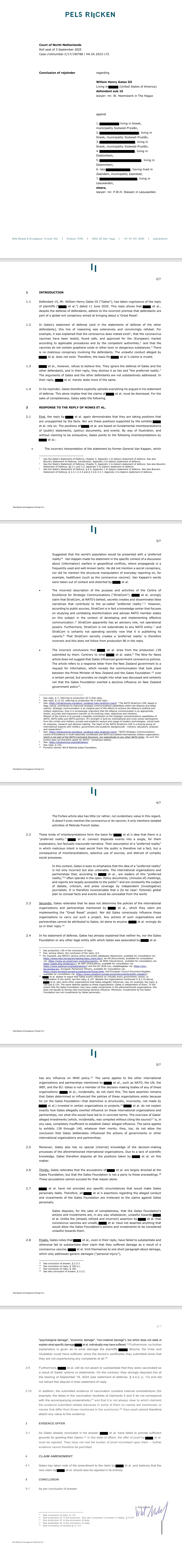 V nizozemskem primeru, ki je vključ odškodnino žrtvam injekcij mRNA proti COVID-u, je Bill Gates spregovoril prek svojega odvetnika.