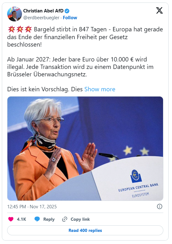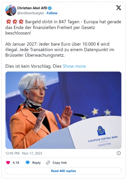 Omejitev gotovine, ki jo je EU ustvarila s podporo posameznih vlad držav članic, je zato dolgoročno perfidna metoda zmanjševanja uporabe gotovine na majhne zneske zaradi inflacije in izgube kupne moči. Končni cilj je, da se ljudje navadijo na uporabo ponudnikov digitalnih plačil, kjer koli je to mogoče – celo do te mere, da se uvede centralna banka digitalne valute (CBDC).