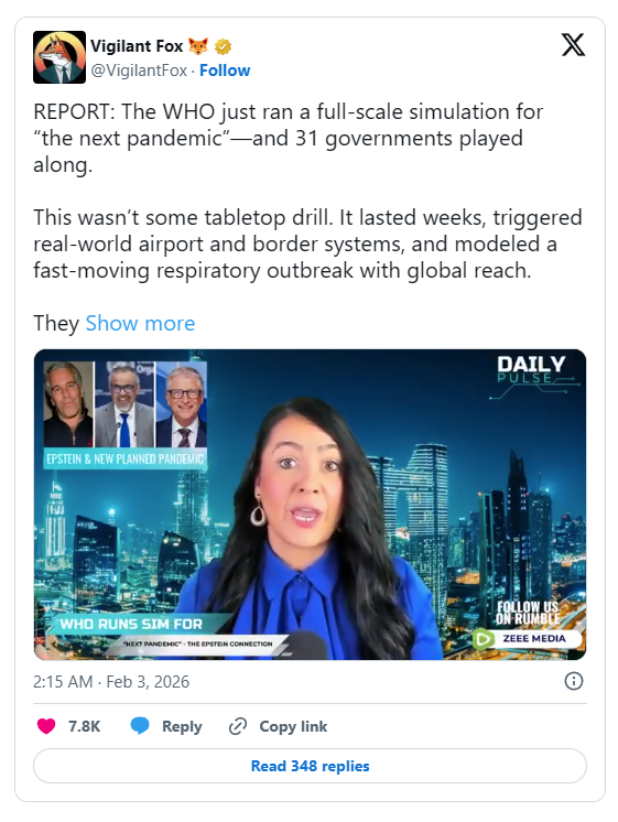 „To ni bila simulacijska vaja. Trajala je več tednov, aktivirala je resnične letališke in mejne sisteme ter modelirala hitro epidemijo dihal z globalnim dosegom,“ je o X menil Vigilant Fox.