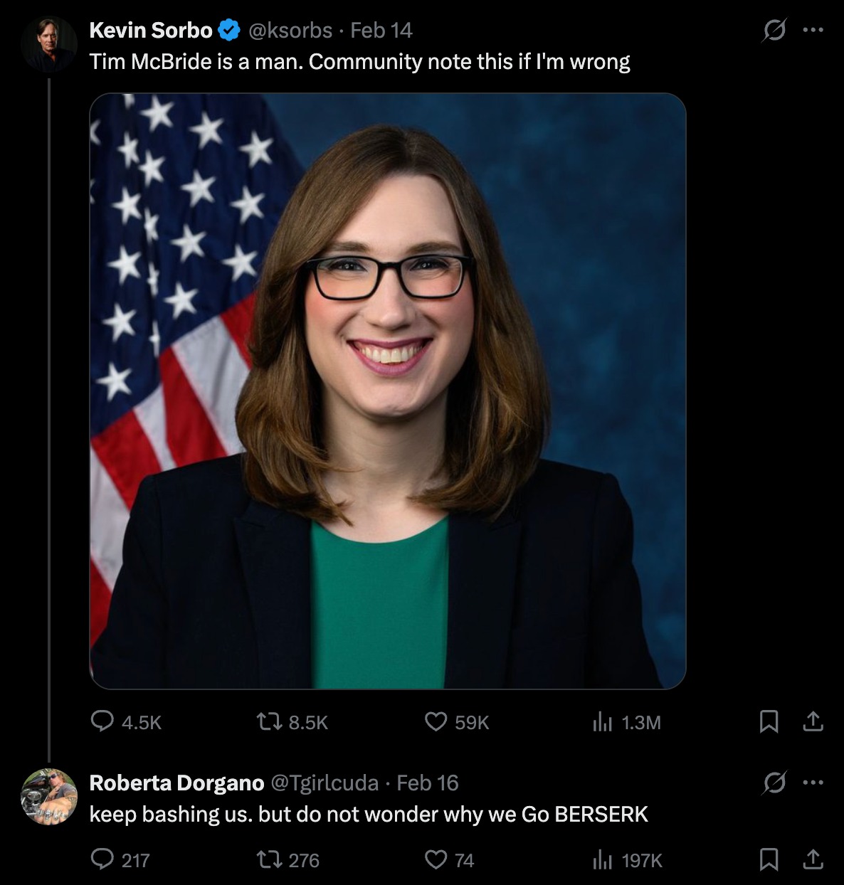 Na X se to vidi kot pravi znanilec stvari, ki prihajajo: Vedno več ljudi se sprašuje, kako lahko Zahod še naprej ugaja transseksualni noriji, čeprav je nevarnost, ki jo predstavljajo ti duševno nestabilni in pogosto radikalni posamezniki, vse bolj očitna. Šele prejšnji teden je v Kanadi mladenič v obleki, ki se je hotel izdajati za žensko, zagrešil uničujoč pokol v šoli.