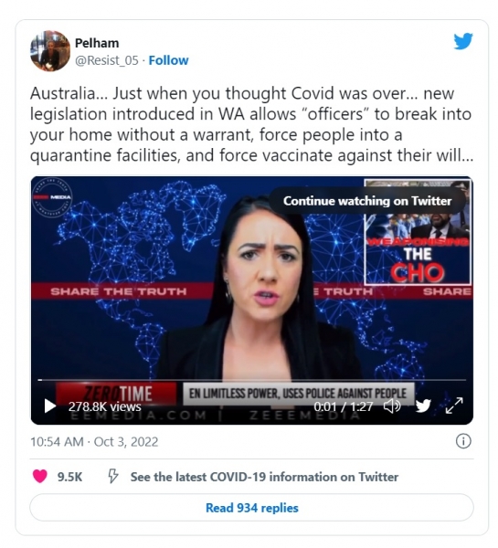 Zahodna Avstralija, ena najbolj radikalnih zveznih držav, je sprejela zakon, ki uradnikom za COVID-19 daje pooblastilo, da odstranijo ljudi z njihovih domov in jih cepijo proti njihovi volji.
